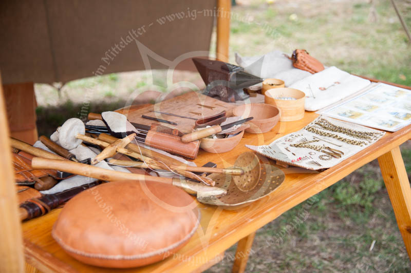 (bkw) Erstmalig waren wir als Darsteller zu Gast im Archäologischen Landesmuseum Brandenburg bei der Archäotechnika. Das Thema war in diesem Jahr "Menschen in der mittelalterlichen Stadt". Dass dies gut zu meiner Darstellung als "Draht- und Blechschmied passte, ist auch dem Museum aufgefallen und so wurden wir zu Beginn des Jahres, zusammen mit Ulrike (Themenstand Spielzeug) und Michael (Handwerk des Mollenhauers) nach Brandenburg an der Havel eingeladen. Die Veranstaltung war für uns sehr nett und ich hatte seit ca.einem Jahr wieder die Gelegenheit eine Publikumsveranstaltung als Handwerker zu erleben. Die Gäste waren sehr interessiert und bunt zwischen privaten Besuchern und Fachpublikum gemischt. Gerne wieder...